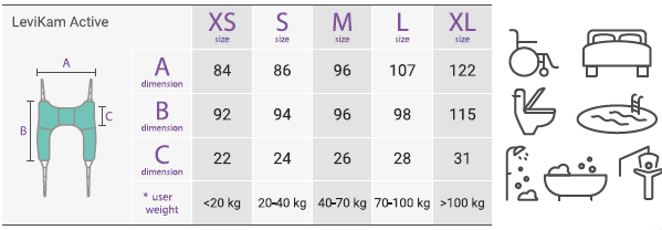 LeviKam Active tualeto procedūrų diržas skirtas kasdienėms higienos procedūroms, užtikrinant patogią prieigą intymiai priežiūrai. Taip pat suteikiamas patogus perkėlimas sėdimoje padėtyje. Diržas turi atramą po pečiais, todėl leidžia pakelti asmenį su negalia. Jis pagamintas iš specialios, greitai džiūstančios medžiagos ir turi papildomus putplasčio sutvirtinimus.