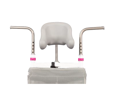- Visos M2 Mini dušo–tualeto kėdės tiekiamos su laikikliu galvos atramai ir šoniniams atramoms.