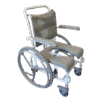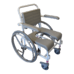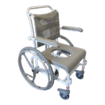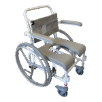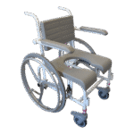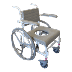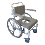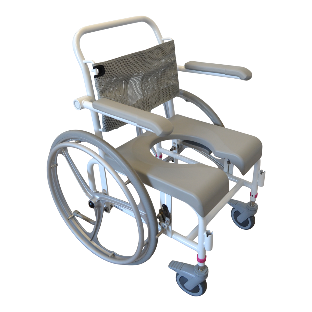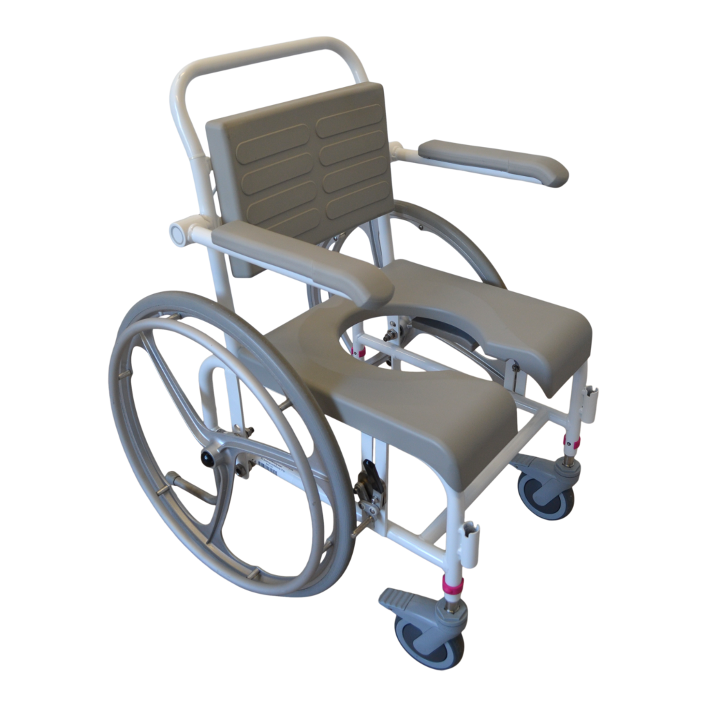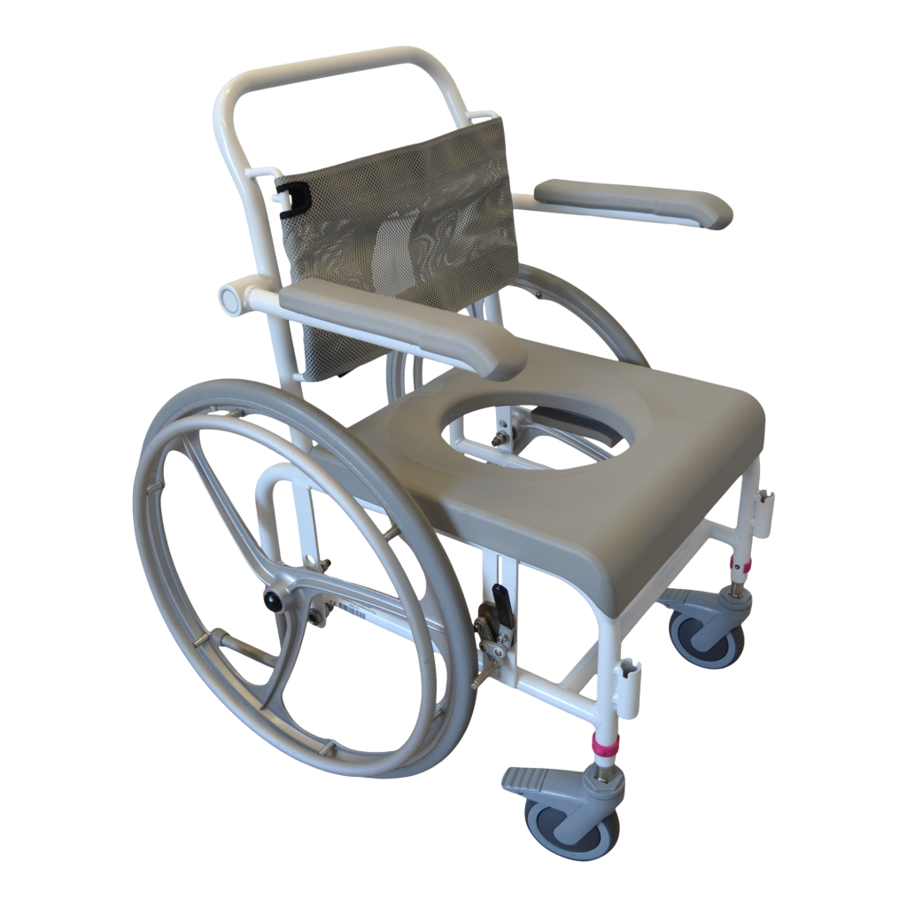 - Standartiškai dušo- tualeto kėdės turi mažus 125 mm priekinius ratukais. Ratukai turi teleskopines kojeles, todėl jų aukštis gali būti reguliuojamas. Jie pagaminti iš nerūdijančio plieno ir turi efektyvią sriegio apsaugą, kuri neleidžia purvui ir plaukams patekti į ašį. Ratukai taip pat turi dvigubo veikimo stabdžius.