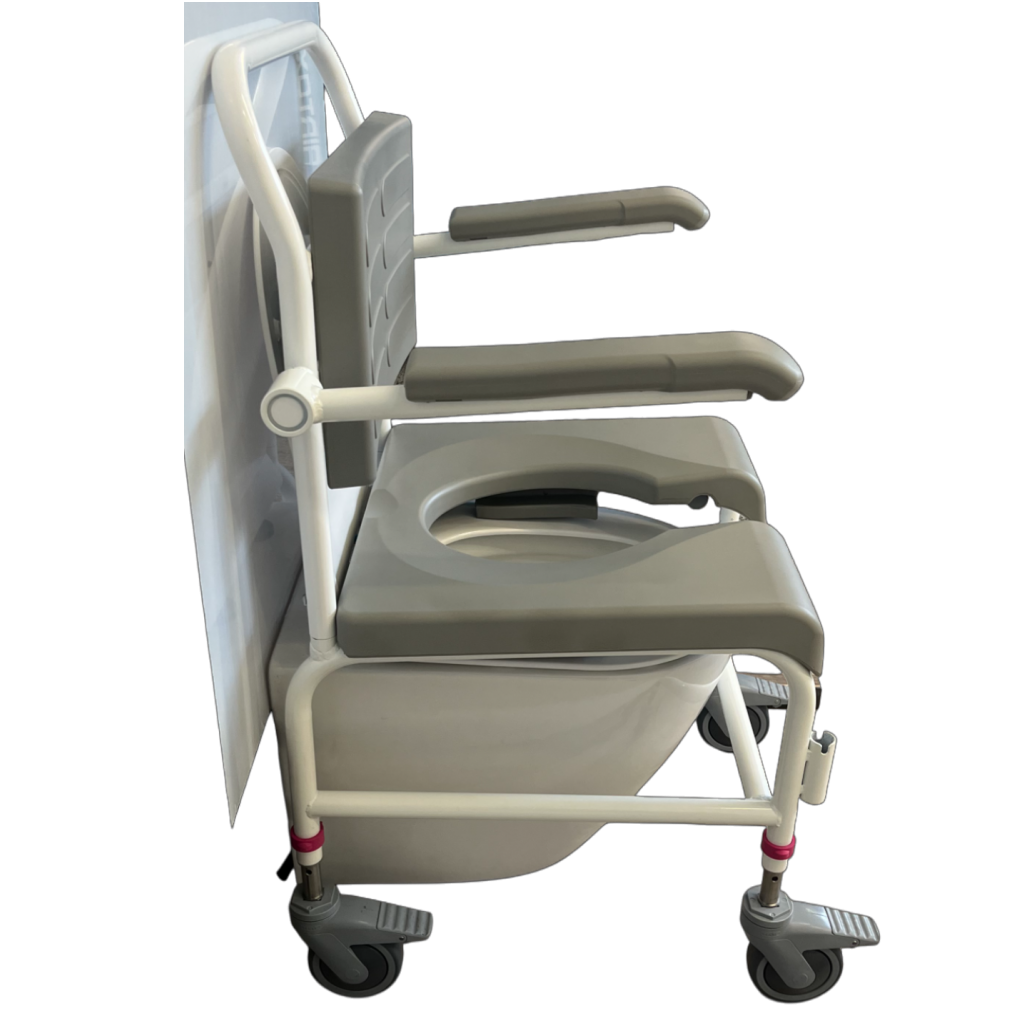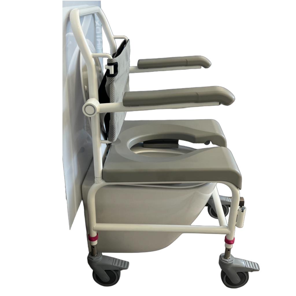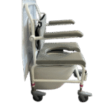 - Kėdė turi atviro tipo sėdynę. Atviro tipo sėdynė palengvina prieinamumą higienos reikmėms, pagaminta iš minkštų PU putų ir turi įmontuotą naktipuodžio indo laikiklį.
