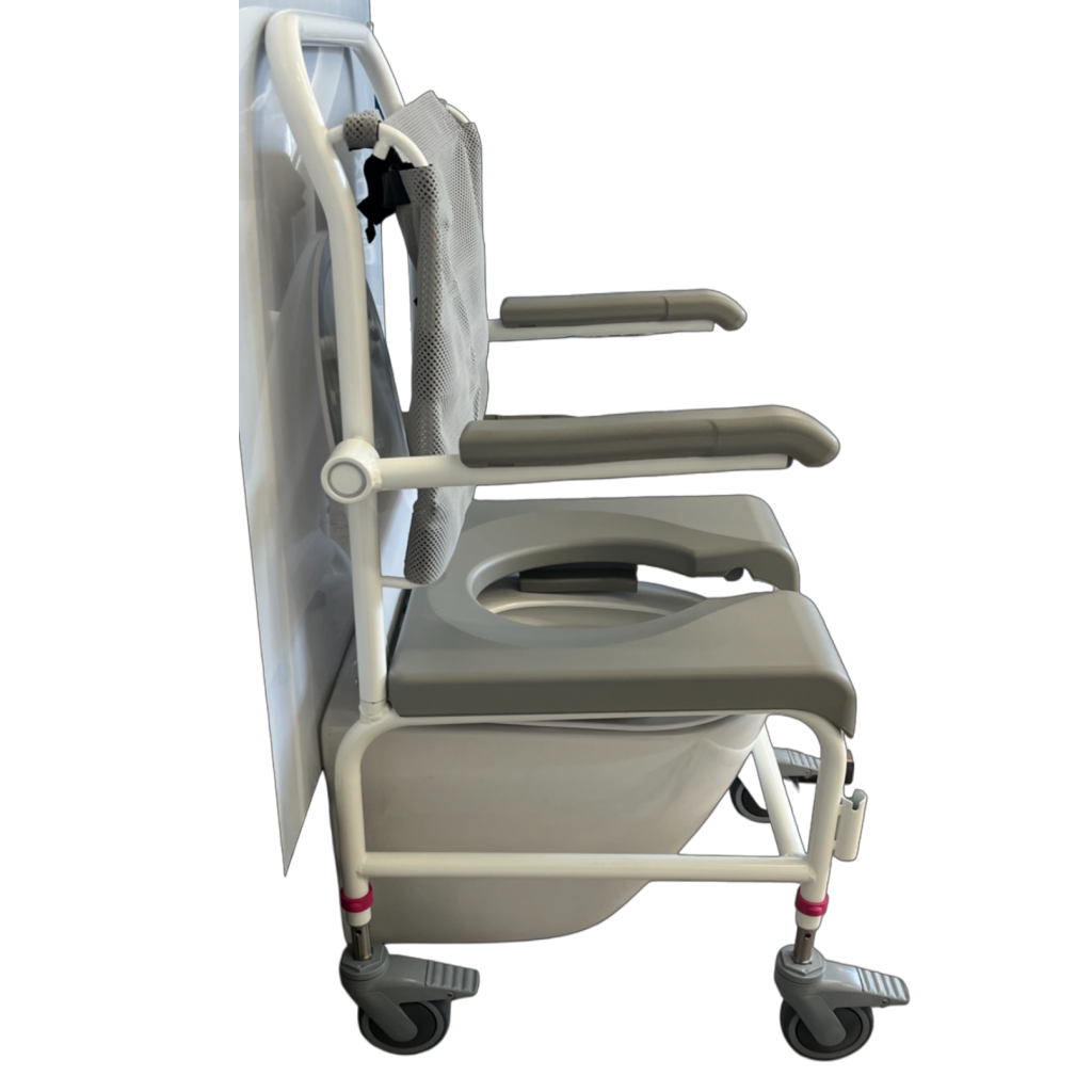 - M2 dušo-tualeto kėdė yra komplektuojama su PU putų nugarėle arba tinklinio audinio (užsegama) nugarėle. Kėdė tinkama naudoti ligoninėse ir kitose įstaigose, nes fiksuotas PU atlošas yra labai lengvai valomas, o pati kėdė greitai paruošiama naudoti kitiems naudotojams. Tinklinė nugarėle yra reguliuojama, todėl ją galima pritaikyti pagal individualius naudotojo poreikius (ypač tinkama naudotojams, turintiems skoliozę). Tinklinė medžiaga neįgeria vandens, o jos perforuota struktūra leidžia odai kvėpuoti. Galima pasirinkti įprastą arba aukštą tinklinę nugarėlę.
